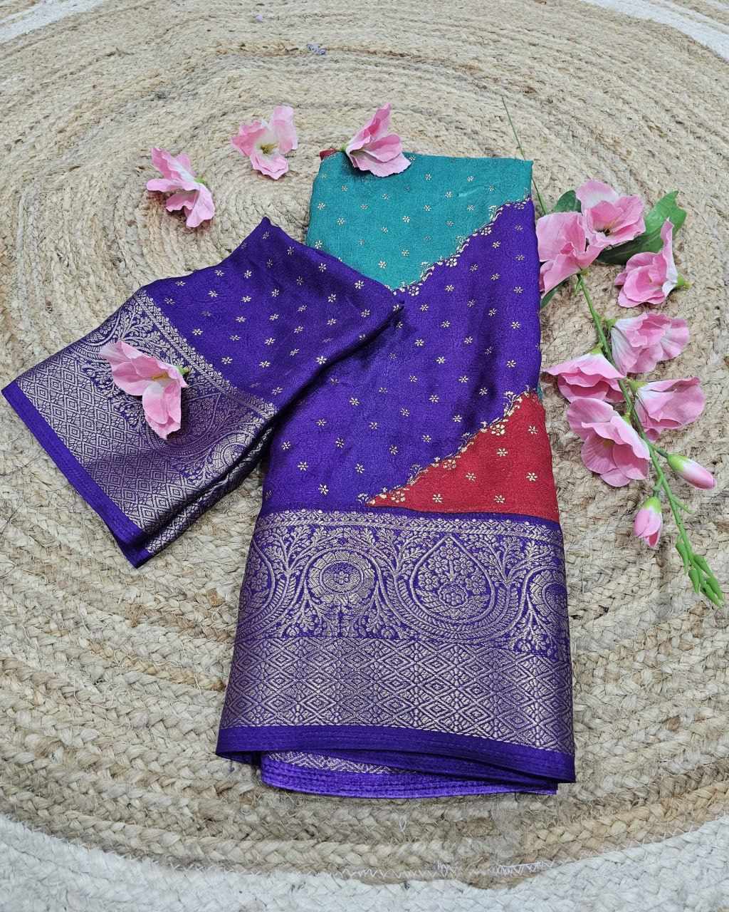 Saree Fabric :march mellow jecard border with foil printed sarees design