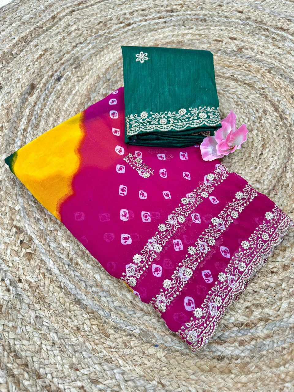 | Name : | PIYU P1051 LERIYA BANDHANI-3 Pink Saree |