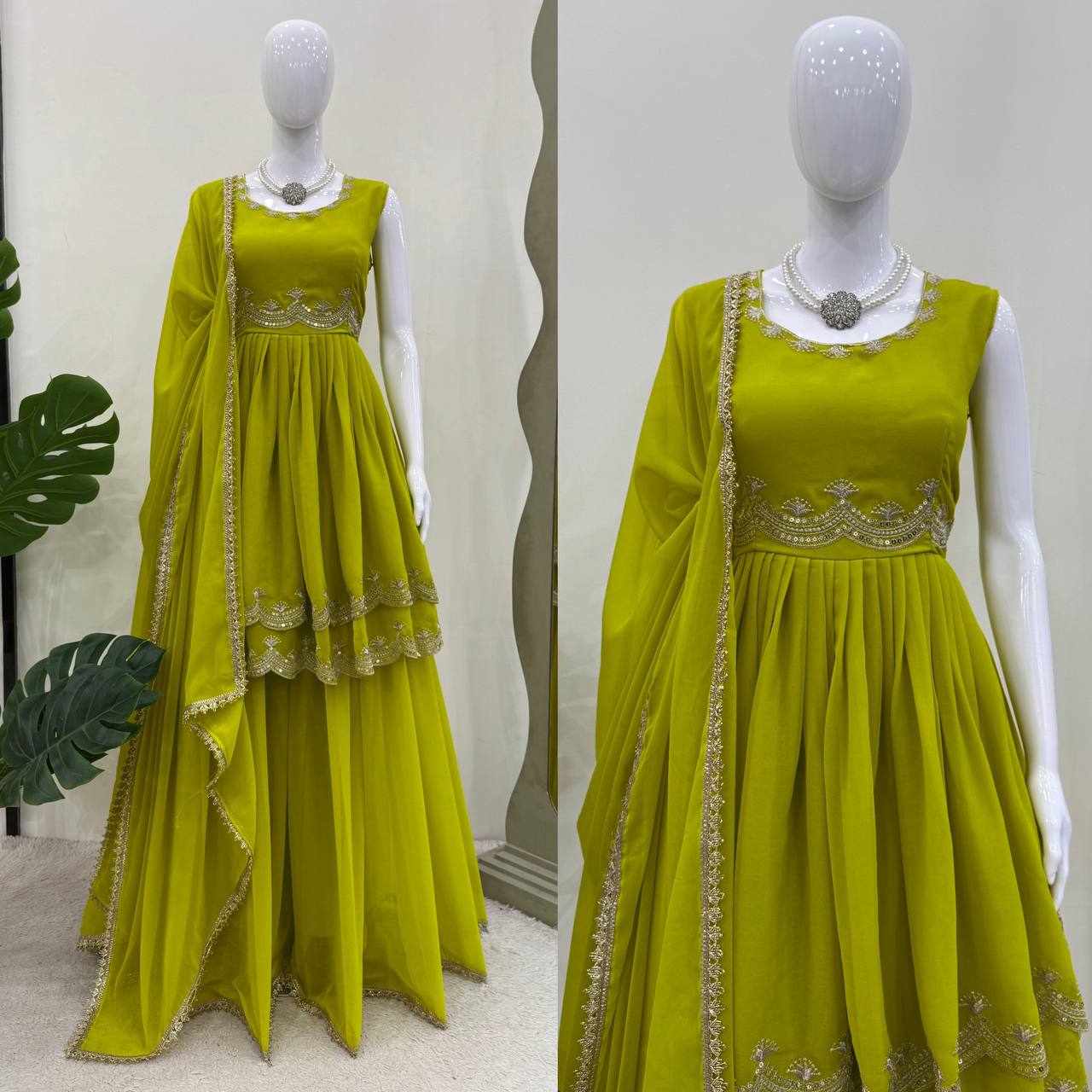 | Name : | RTC 5860 Stunning Foux Gorgette Top And Plazo with Dupatta |