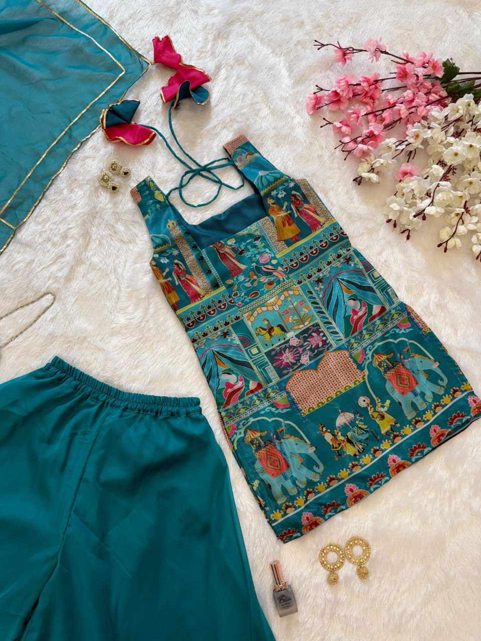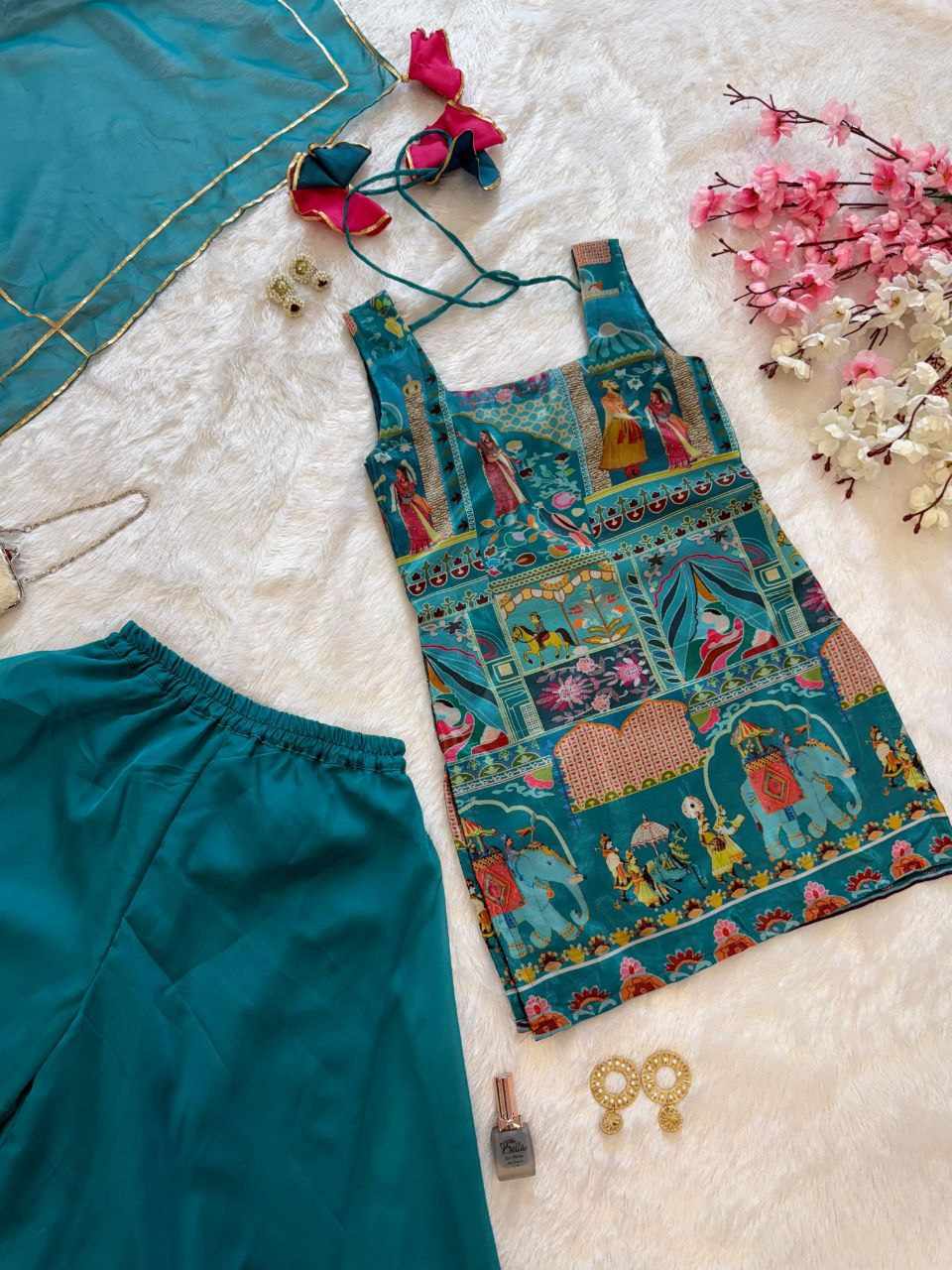Top – Jimmy Organza digital printed kurta, designed for a light, elegant look